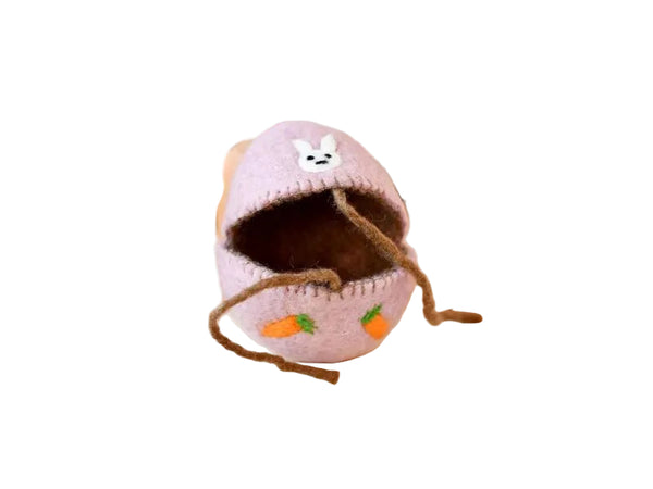 Our Easter egg covers feature an array of playful designs, this egg cover is pink in colour, with bunny and carrot motifs. They make charming additions to Easter baskets, use them to present surprises such as little toys or chocolate eggs for your little ones.