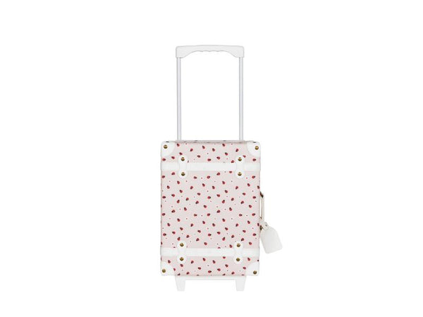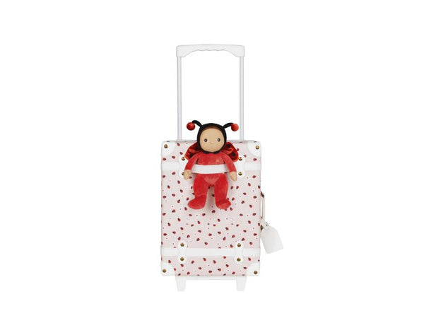A little pink suitcase, a whole lot of adventure – The See-Ya Suitcase – Ladybug! Covered in the sweetest ladybugs and dainty florals on a rosy pink background, the See-Ya Suitcase – Ladybug — a vintage-inspired kids’ suitcase is the best travel sidekick. Perfect for toddlers and young children, this kids’ travel suitcase is ideal for sleepovers, family holidays, weekend road trips, or stylish storage at home. Made from recycled PET plastic, the See-Ya Suitcase is lightweight, durable, and designed for little travelers aged 3–6. It features a retractable handle and wheels for easy rolling, plus a zip compartment and clothing clip to keep everything organised and secure. The outer elastic strap makes the perfect spot for a Cozy Dinkum or Dozy Dinkum to hitch a ride. Whether it's used as carry-on luggage, travel bag or a toy storage solution, the See-Ya Suitcase – Ladybug makes every journey extra sweet. Stackable and compact for small spaces, it’s both practical and adorable!
