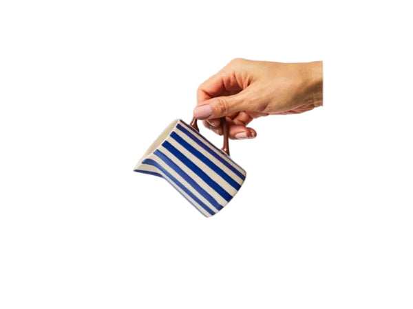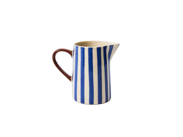 The Bloomie Blue Milk Jug brings cool tones and graphic charm to your table. Hand-painted in bold blue stripes with a burgundy handle, it's crafted from earthenware and sized for everyday use. Ideal for cream, sauces or even a few fresh flowers.